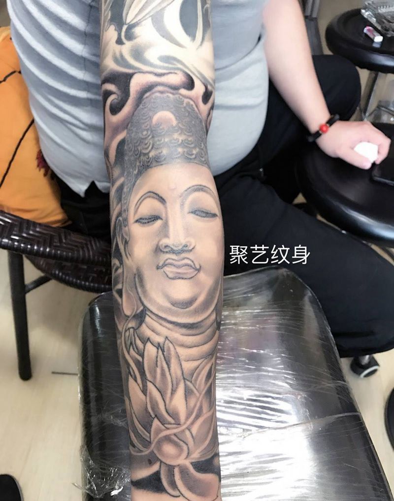 当前位置: 首页 >天津市纹身店-聚艺纹身纹身图案>接花臂佛头纹身图片_