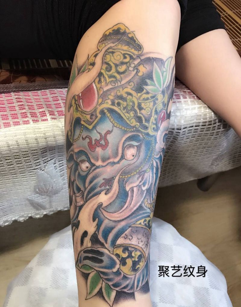 当前位置: 首页 >天津市纹身店-聚艺纹身纹身图案>小腿象神纹身图片_成品腿部传统人物宗教鬼神纹身图案