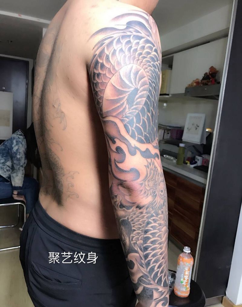 当前位置: 首页 >天津市纹身店-聚艺纹身纹身图案>覆盖纹身盘臂龙纹身图片_