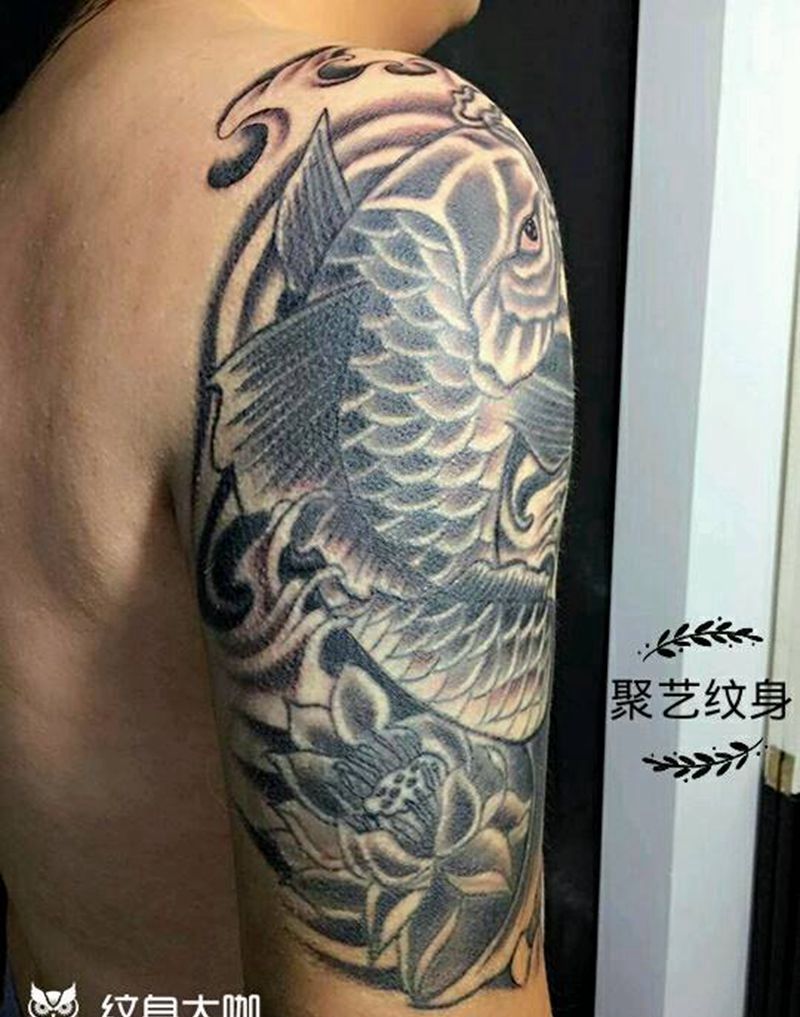 当前位置: 首页 >天津市纹身店-聚艺纹身纹身图案>鲤鱼翻江纹身图片_手臂传统动物成品纹身图案