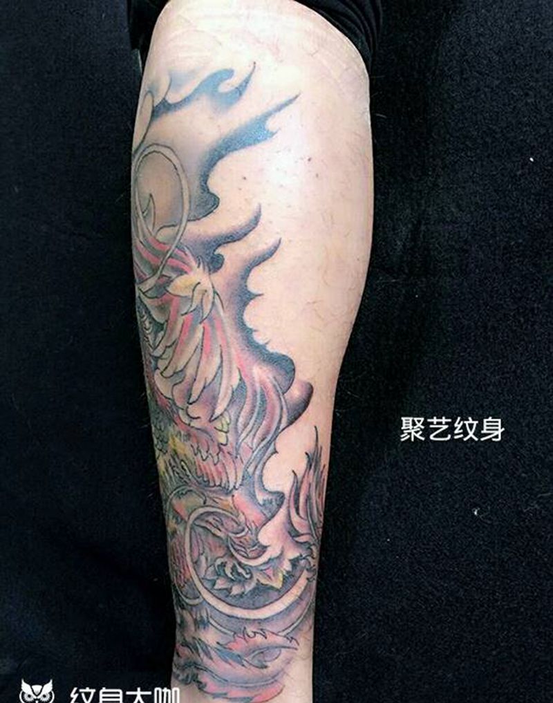 • T网红王老大花腿龙纹身图片_腿部新传统纹身图案
