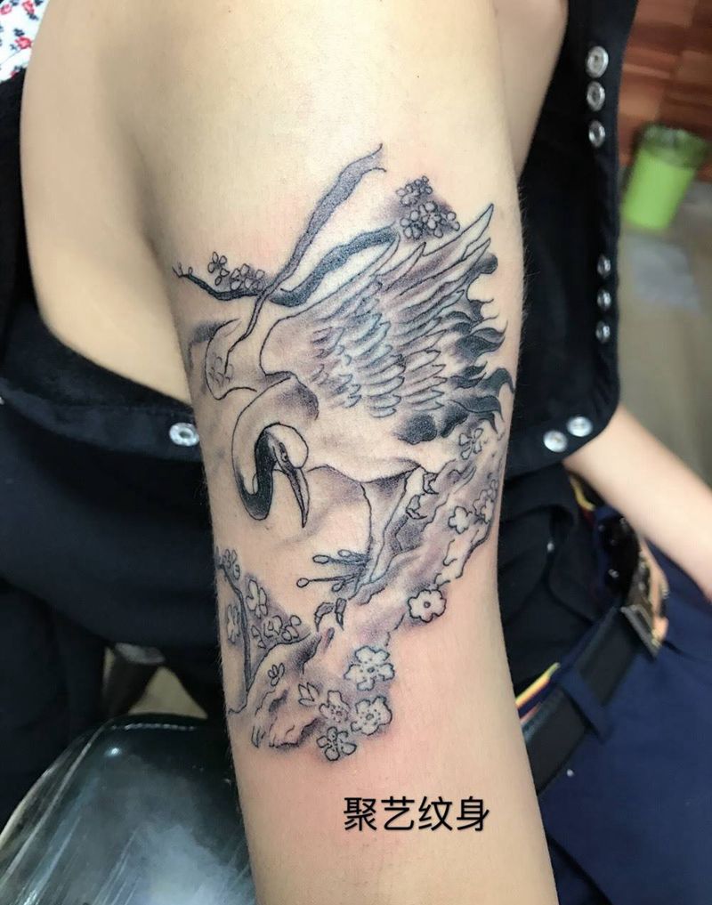 当前位置: 首页 >天津市纹身店-聚艺纹身纹身图案>胳膊仙鹤纹身图片_成品手臂传统动物纹身图案