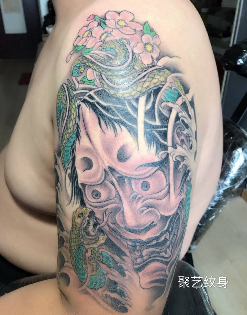 般若蟒蛇纹身图片_成品手臂传统鬼神纹身图案