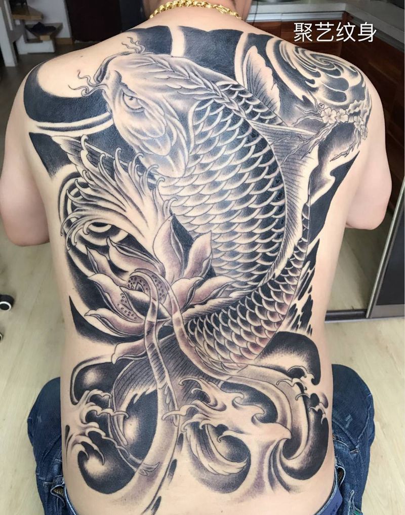 当前位置: 首页 >天津市纹身店-聚艺纹身纹身图案>满背鲤鱼纹身图片_