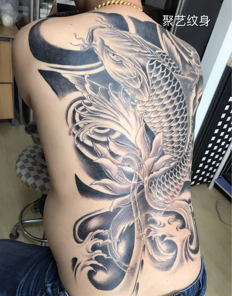 当前位置: 首页 >天津市纹身店-聚艺纹身纹身图案>满背鲤鱼纹身图片_