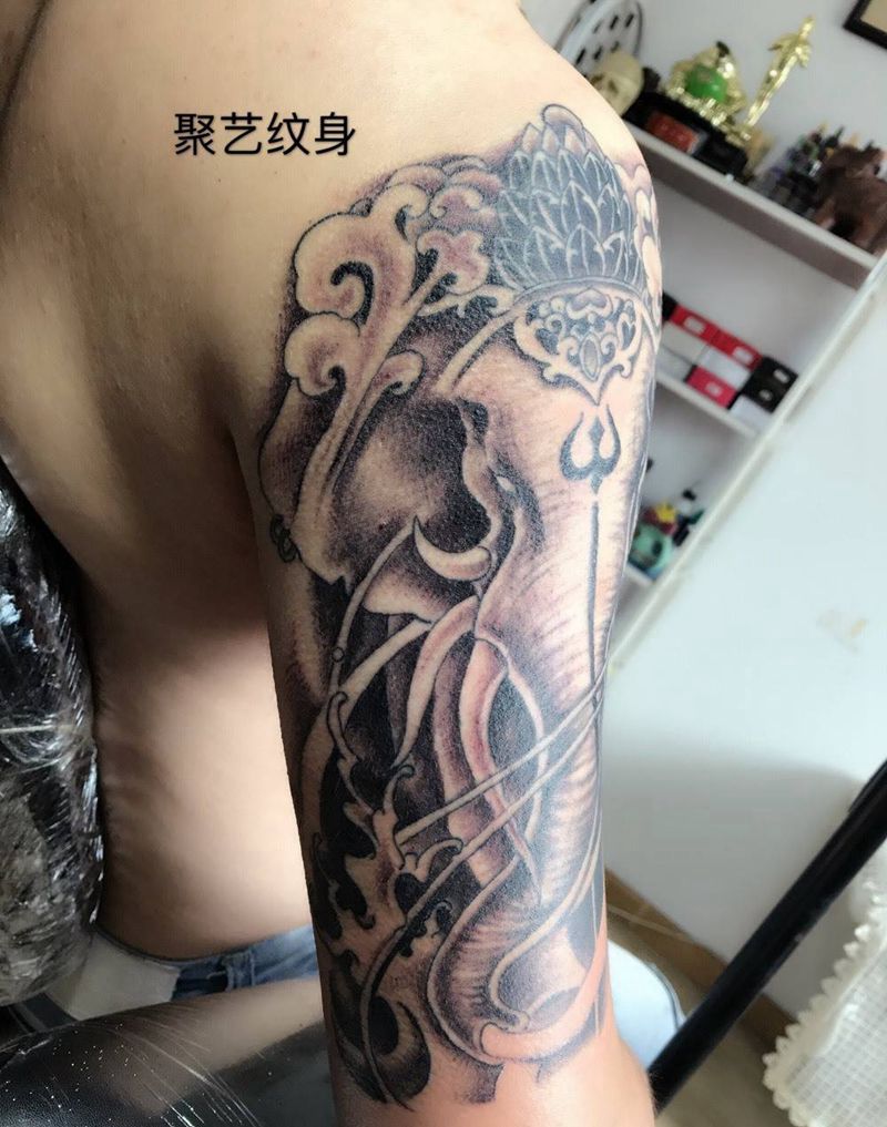 六牙白象神纹身图片_成品手臂传统动物纹身图案
