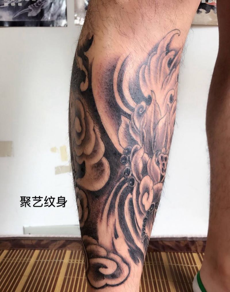 当前位置: 首页 >天津市纹身店-聚艺纹身纹身图案>包小腿佛头莲花纹身图片_成品腿部传统人物植物纹身图案
