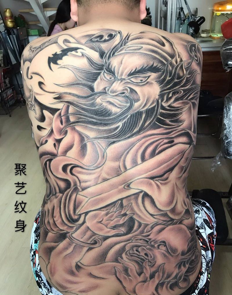 当前位置: 首页 >天津市纹身店-聚艺纹身纹身图案>钟馗捉鬼纹身图片_
