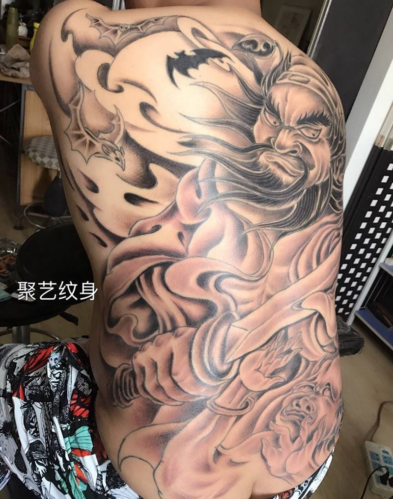 黑灰满背纹身图案