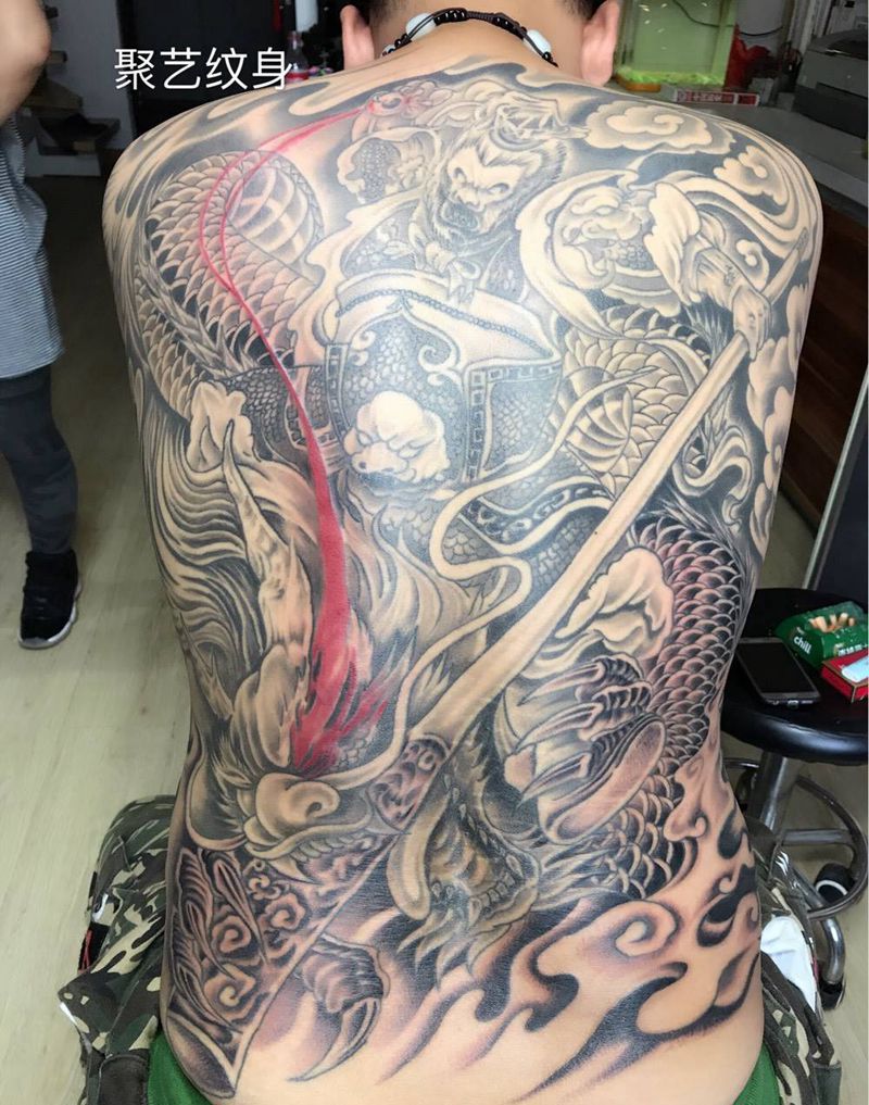 当前位置: 首页 >天津市纹身店-聚艺纹身纹身图案>满背大圣夺龙珠纹身图片_背部纹身图案