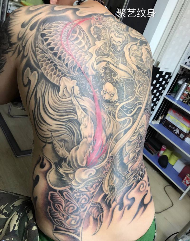 当前位置: 首页 >天津市纹身店-聚艺纹身纹身图案>满背大圣夺龙珠纹身图片_背部纹身图案