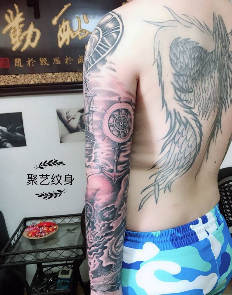 当前位置: 首页 >天津市纹身店-聚艺纹身纹身图案>欧美航海花臂纹身图片_