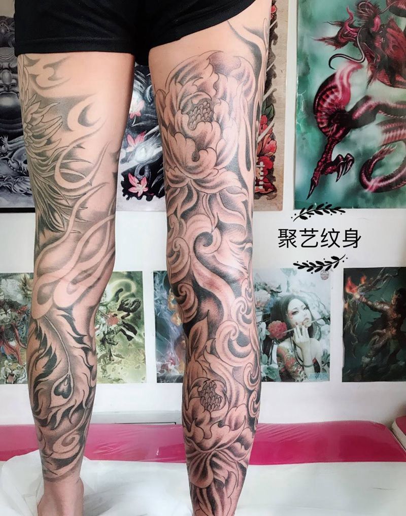• T网红王老大花腿龙纹身图片_腿部新传统纹身图案