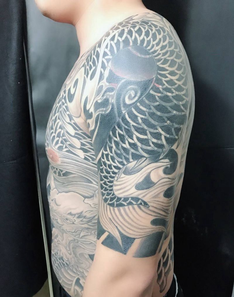 覆盖纹身开衫半甲纹身图片_胸部手臂纹身图案