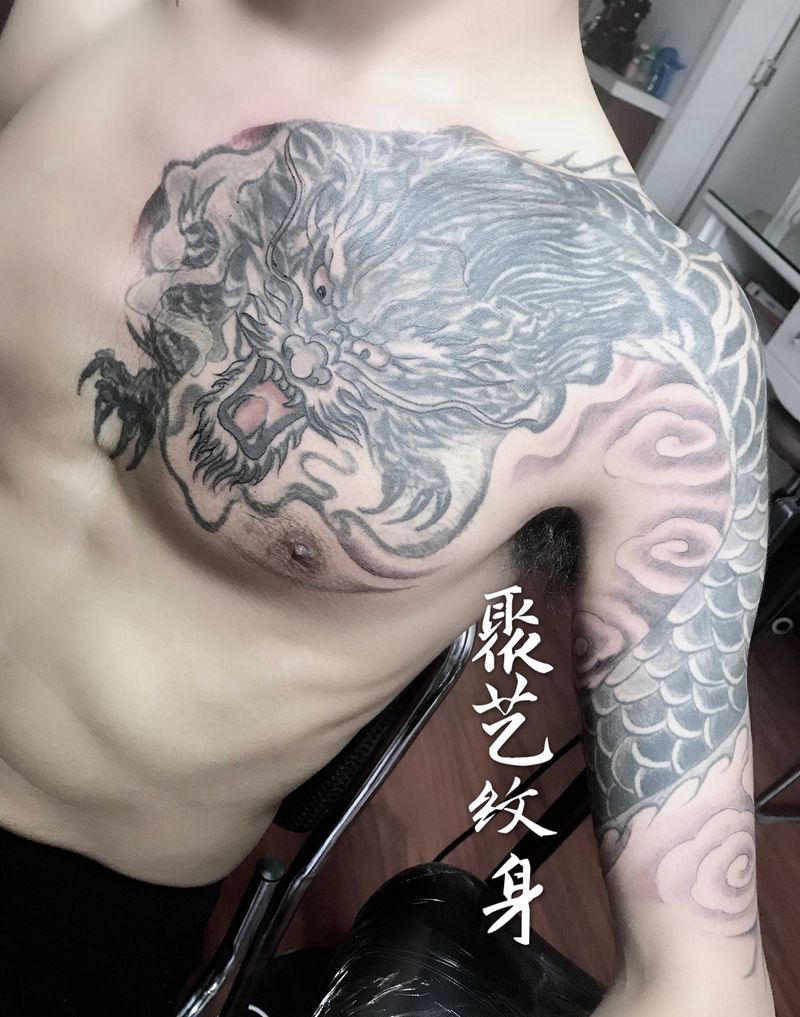 当前位置: 首页 >天津市纹身店-聚艺纹身纹身图案>修改纹身过肩龙纹身图片_胸部手臂纹身图案
