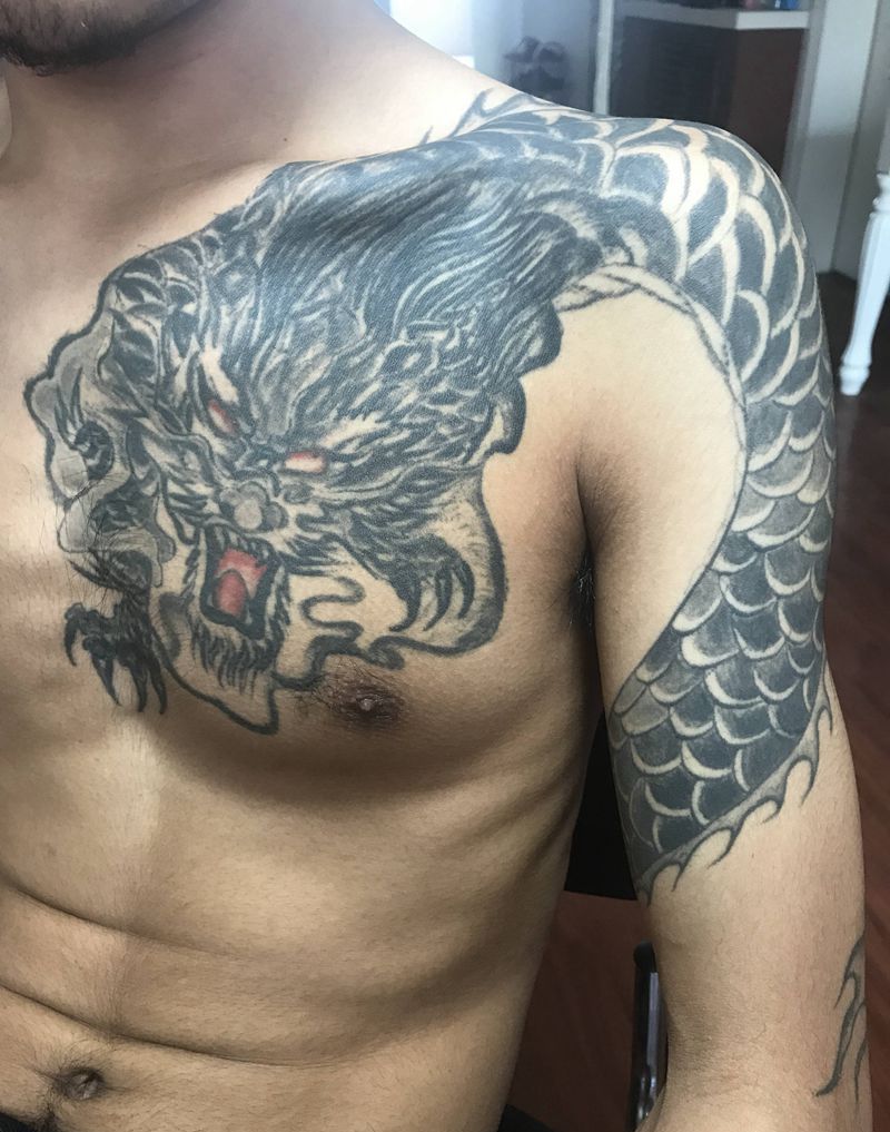 当前位置: 首页 >天津市纹身店-聚艺纹身纹身图案>修改纹身过肩龙纹身图片_胸部手臂纹身图案
