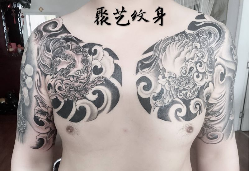 当前位置: 首页 >天津市纹身店-聚艺纹身纹身图案>唐狮半甲纹身图片_胸部纹身图案