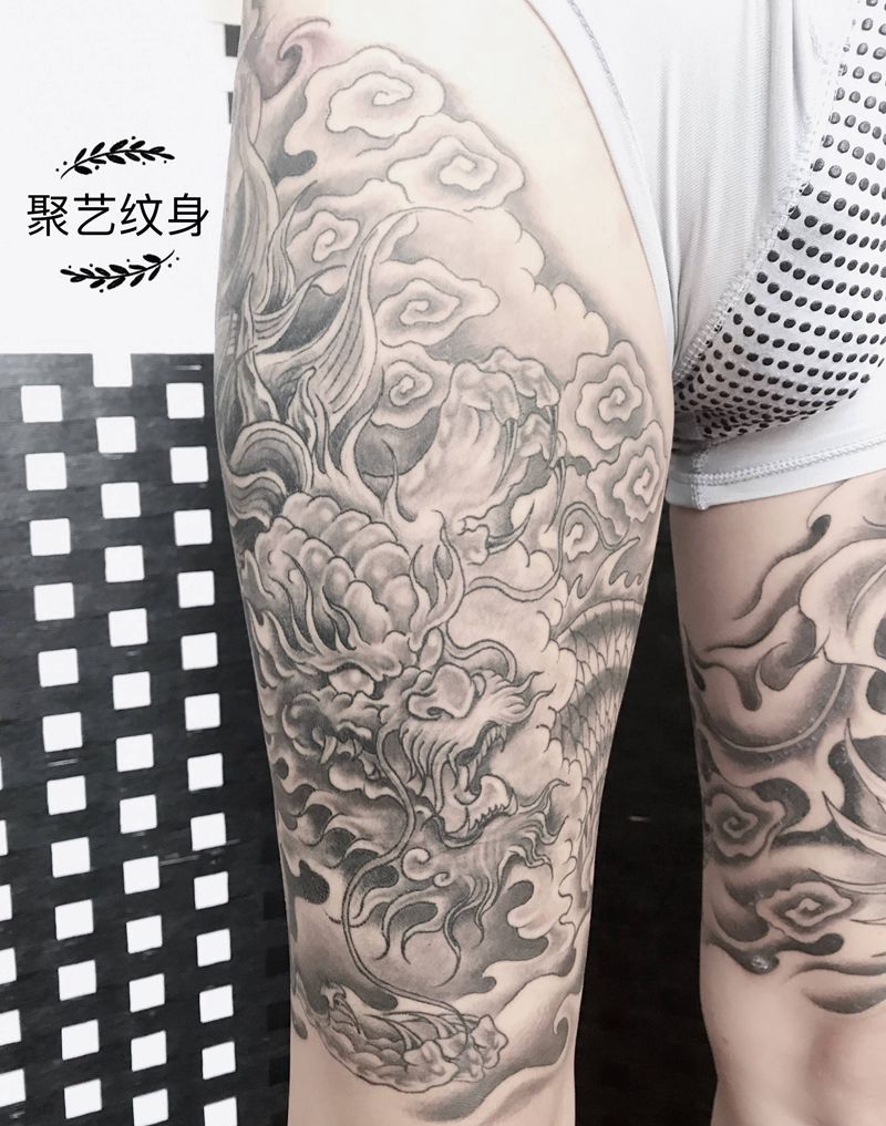 当前位置: 首页 >天津市纹身店-聚艺纹身纹身图案>包腿龙纹身图片_腿部纹身图案