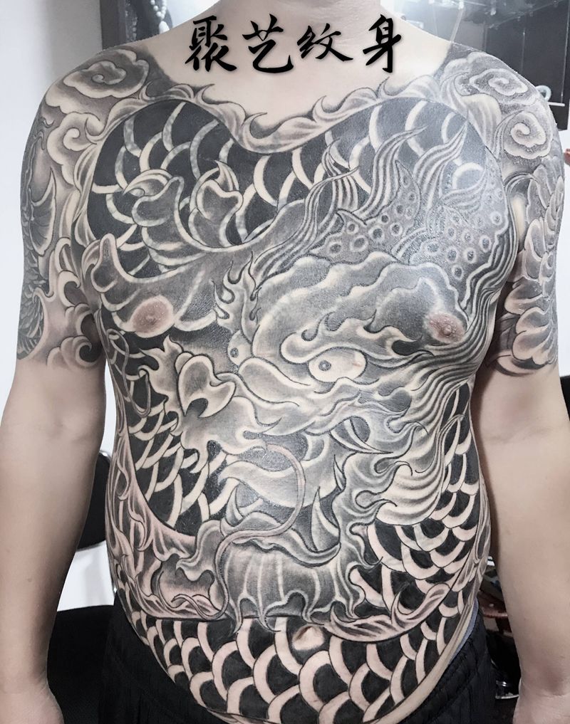 覆盖纹身传统龙纹身图片_胸部纹身图案