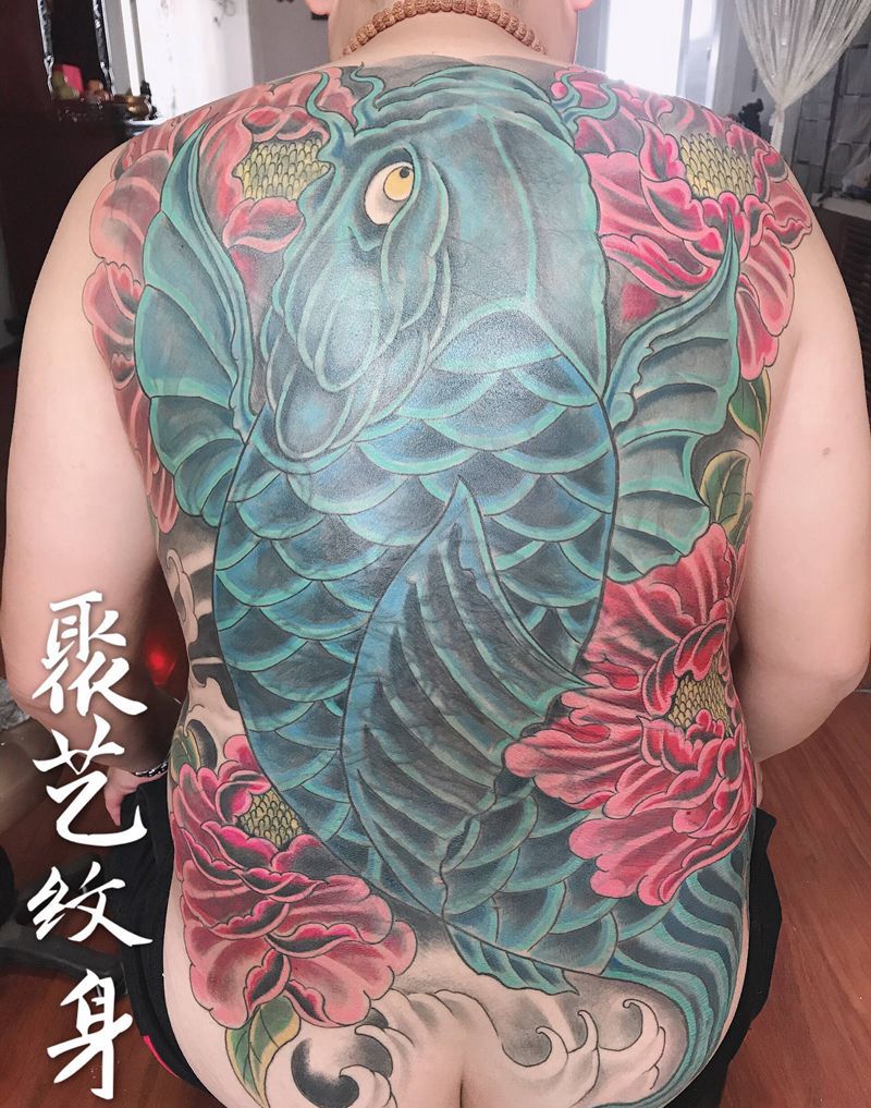 当前位置: 首页 >天津市纹身店-聚艺纹身纹身图案>覆盖纹身富贵锦鲤纹身图片_背部纹身图案