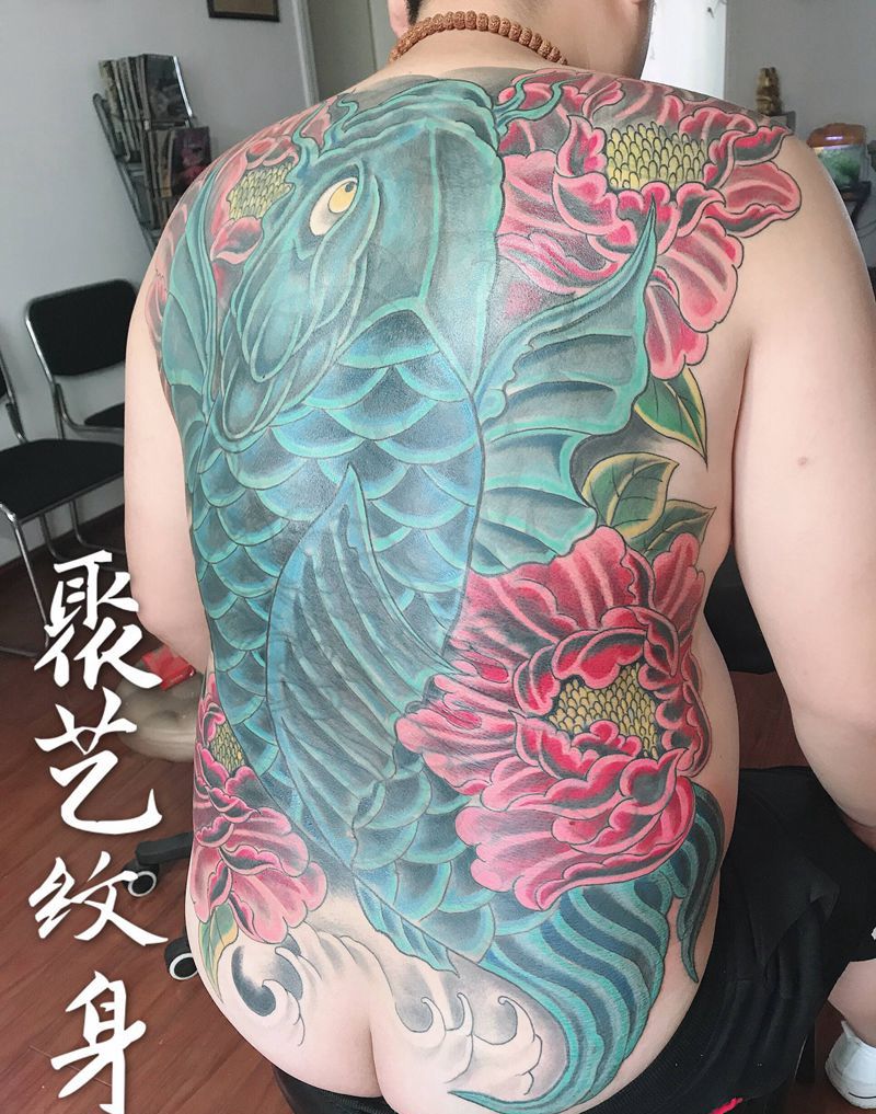 覆盖纹身富贵锦鲤纹身图片_背部纹身图案