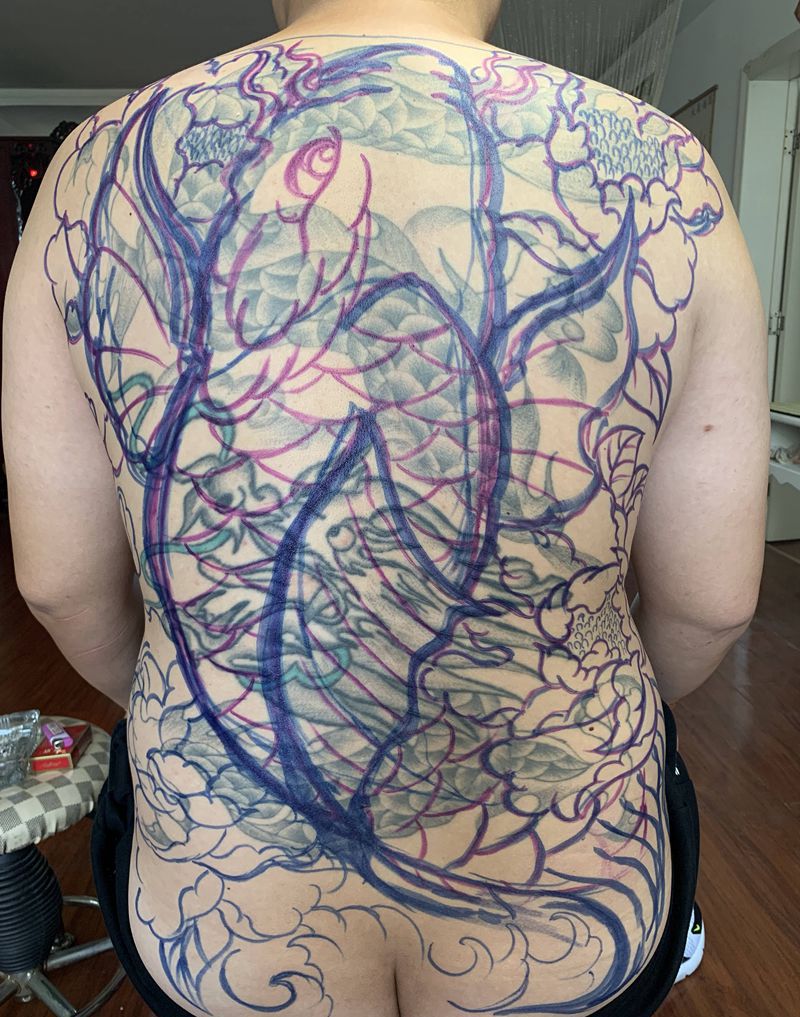 覆盖纹身富贵锦鲤纹身图片_背部纹身图案