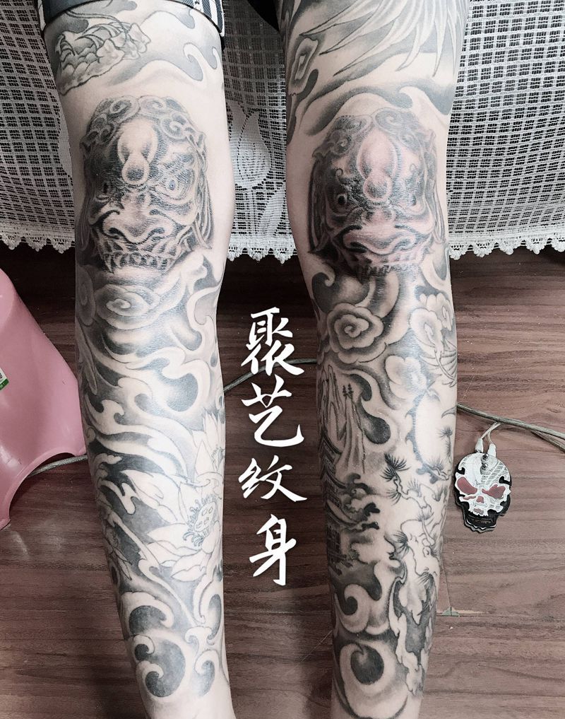 当前位置: 首页 >天津市纹身店-聚艺纹身纹身图案>膝盖唐狮纹身图片_腿部纹身图案