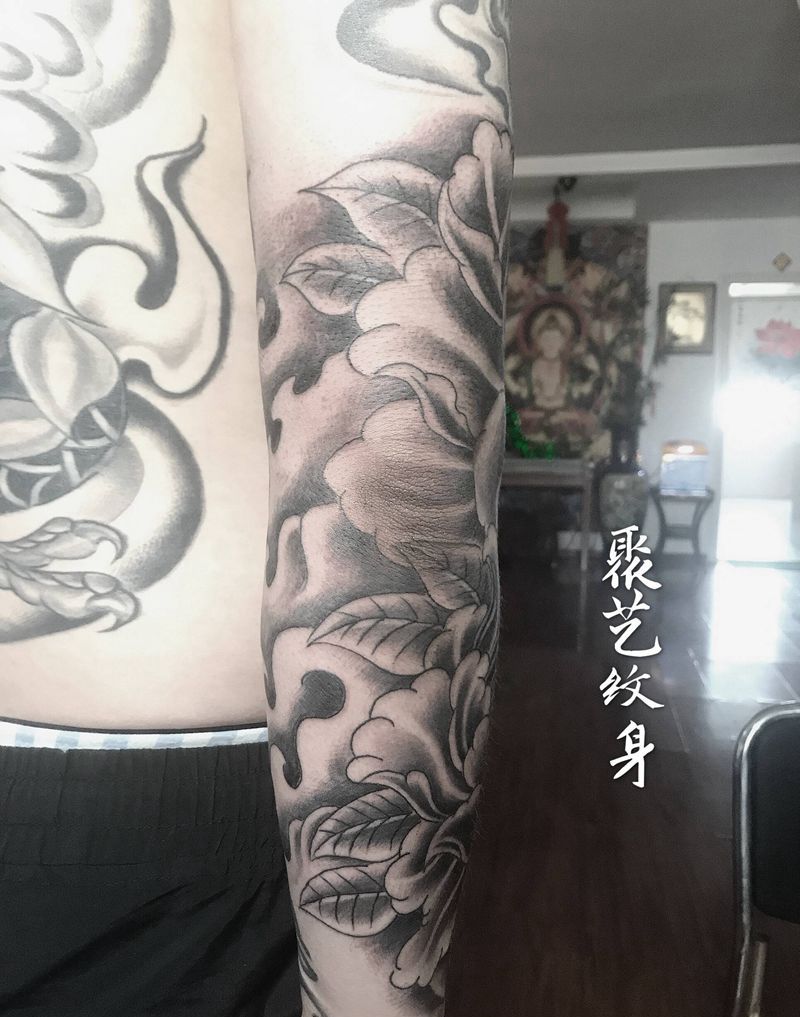 当前位置: 首页 >天津市纹身店-聚艺纹身纹身图案>接牡丹花臂纹身图片_手臂纹身图案