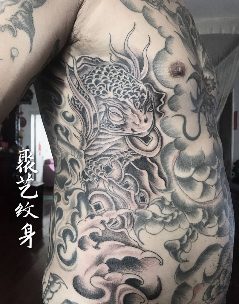 • T云龙九郎纹身图片_背部老传统云龙九郎纹身图案