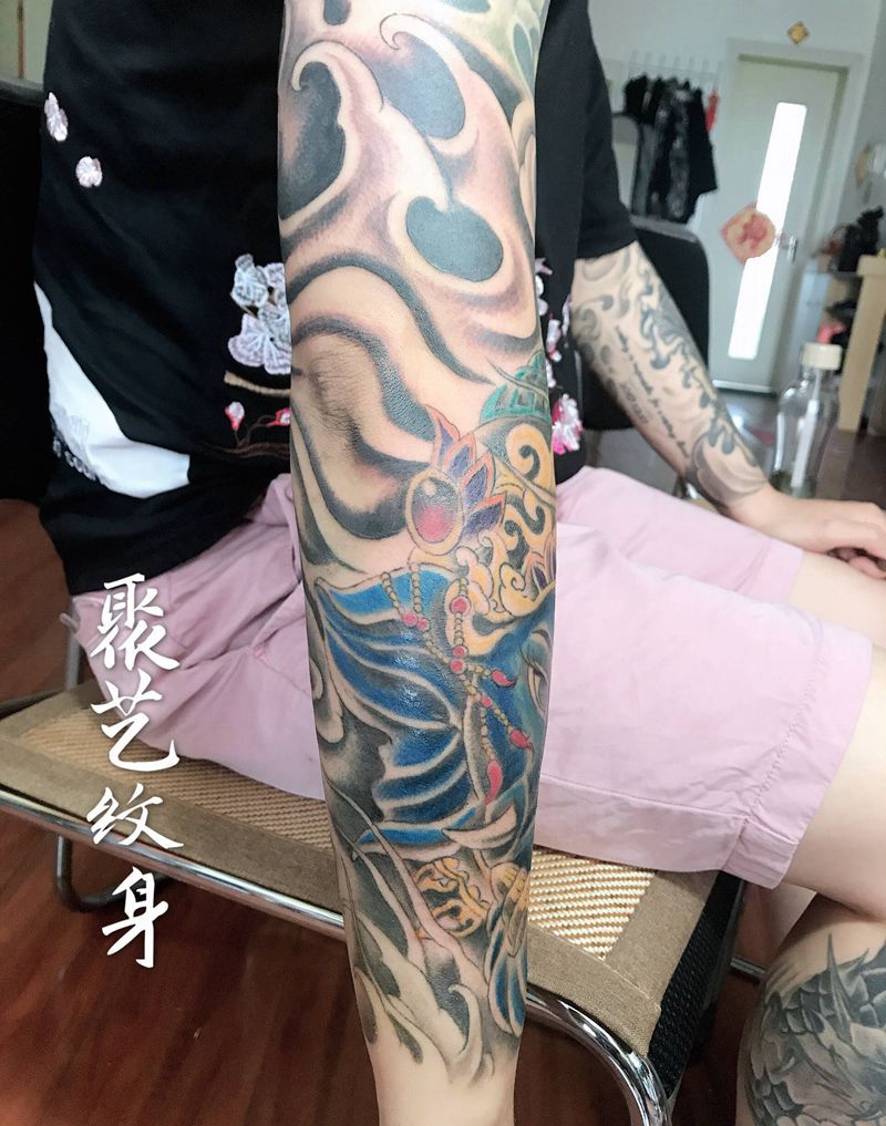 当前位置: 首页 >天津市纹身店-聚艺纹身纹身图案>接花臂象神纹身图片_手臂纹身图案