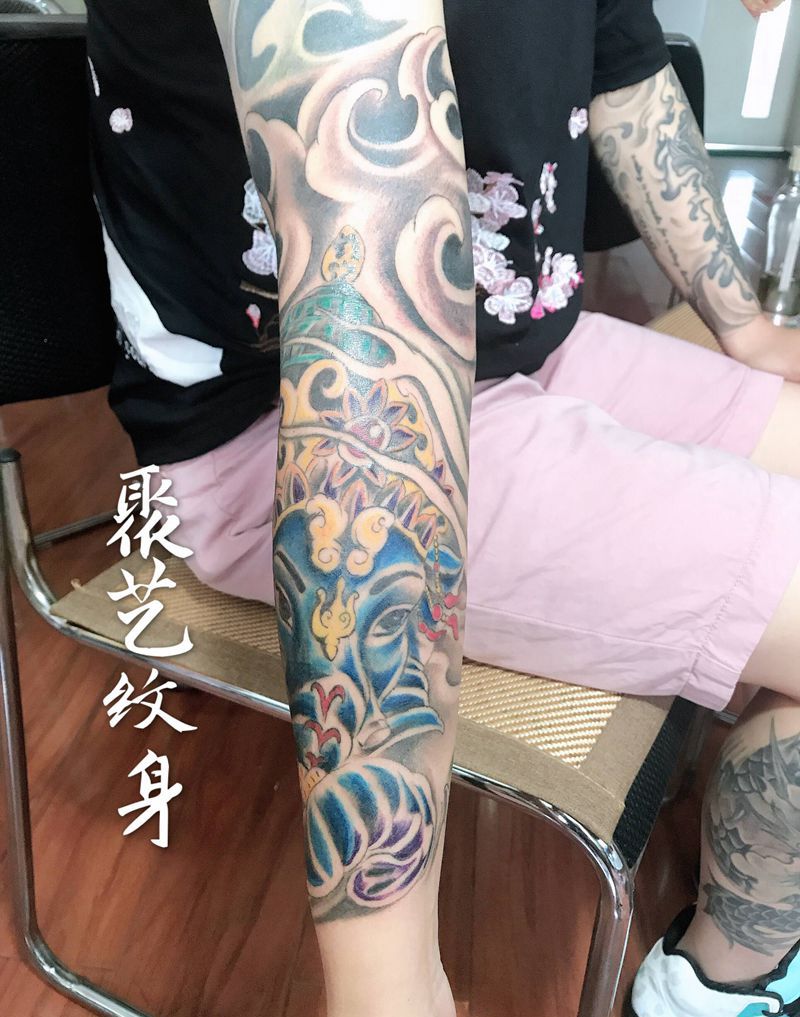 当前位置: 首页 >天津市纹身店-聚艺纹身纹身图案>接花臂象神纹身图片_手臂纹身图案