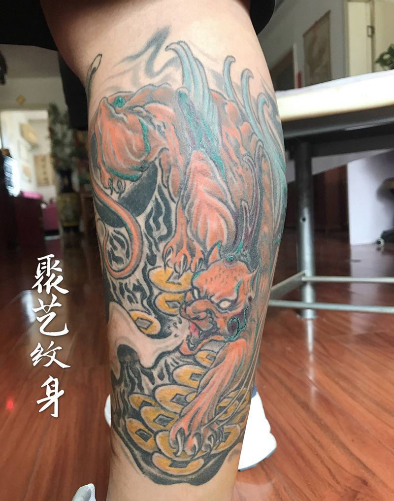 当前位置: 首页 >天津市纹身店-聚艺纹身纹身图案>招财貔貅纹身图片_腿部纹身图案