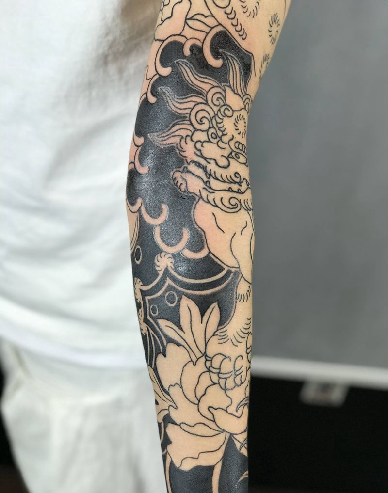 当前位置: 首页 >天津市纹身店-天津吴建刺青纹身图案>唐狮子花臂纹身图片_手臂老传统纹身图案