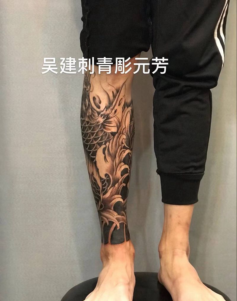 当前位置: 首页 >天津市纹身店-天津吴建刺青纹身图案>锦鲤包小腿纹身图片_腿部新传统纹身图案
