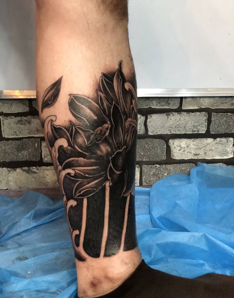 • T网红王老大花腿龙纹身图片_腿部新传统纹身图案