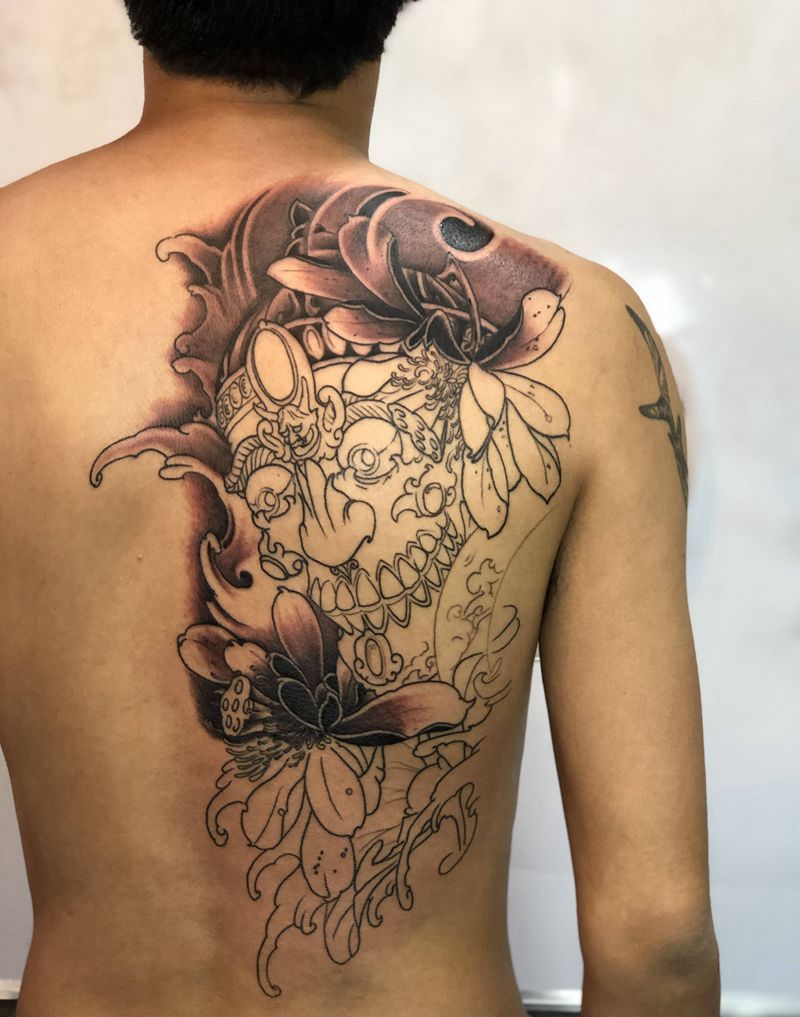 半背 嘎巴拉纹身图片_背部新传统纹身图案