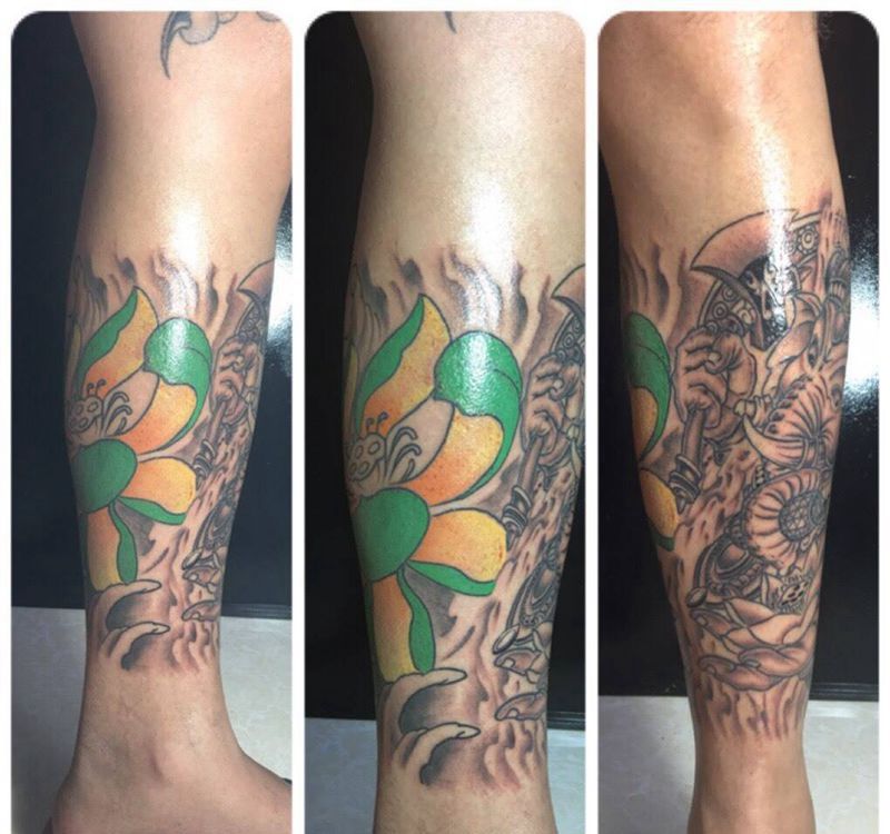 当前位置: 首页 >天津市纹身店-晟堂刺青工作室纹身图案>象神包小腿未完纹身图片_