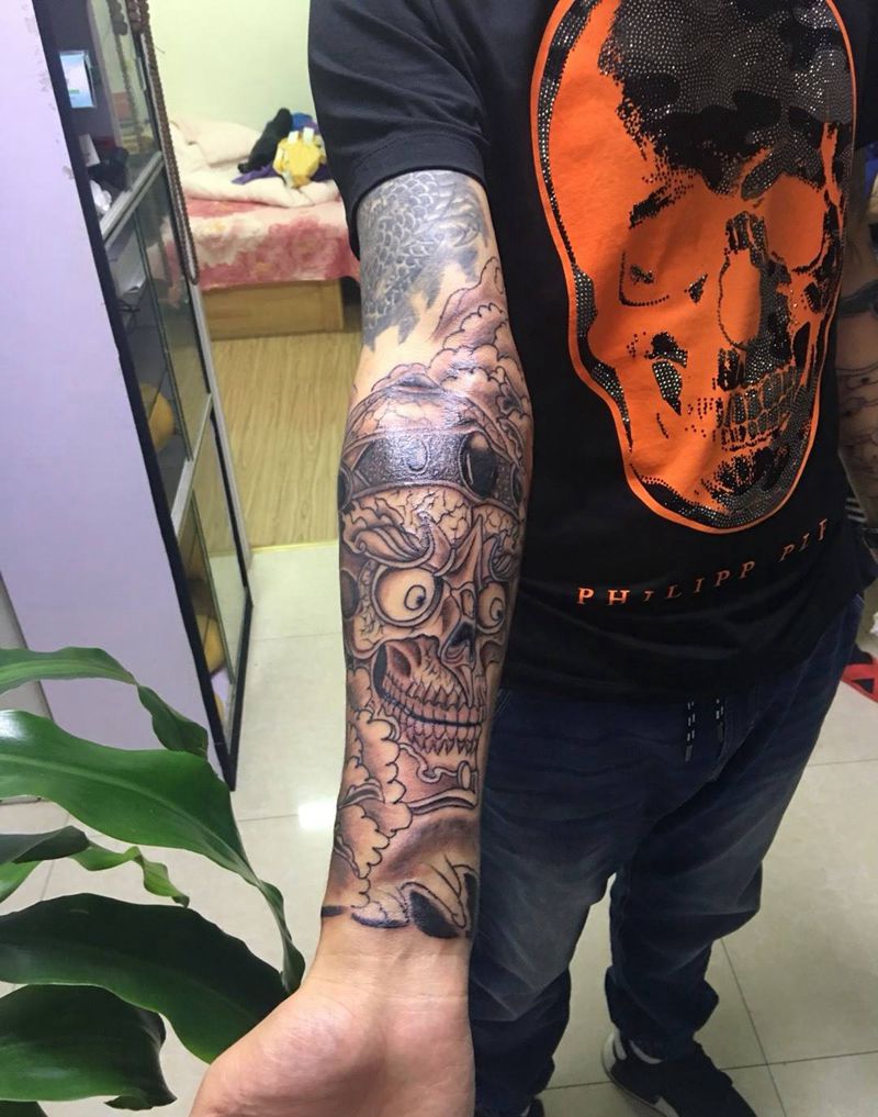 当前位置: 首页 >天津市纹身店-晟堂刺青工作室纹身图案>嘎巴拉接花臂纹身图片_