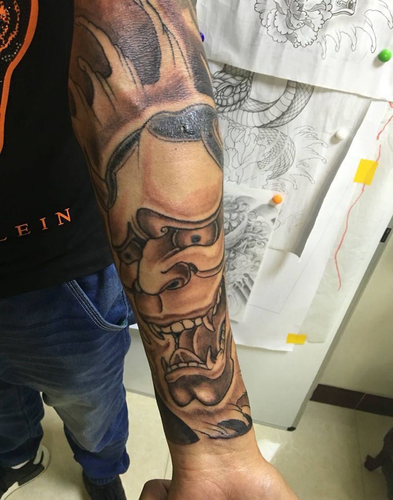 当前位置: 首页 >天津市纹身店-晟堂刺青工作室纹身图案>般若接花臂纹身图片_