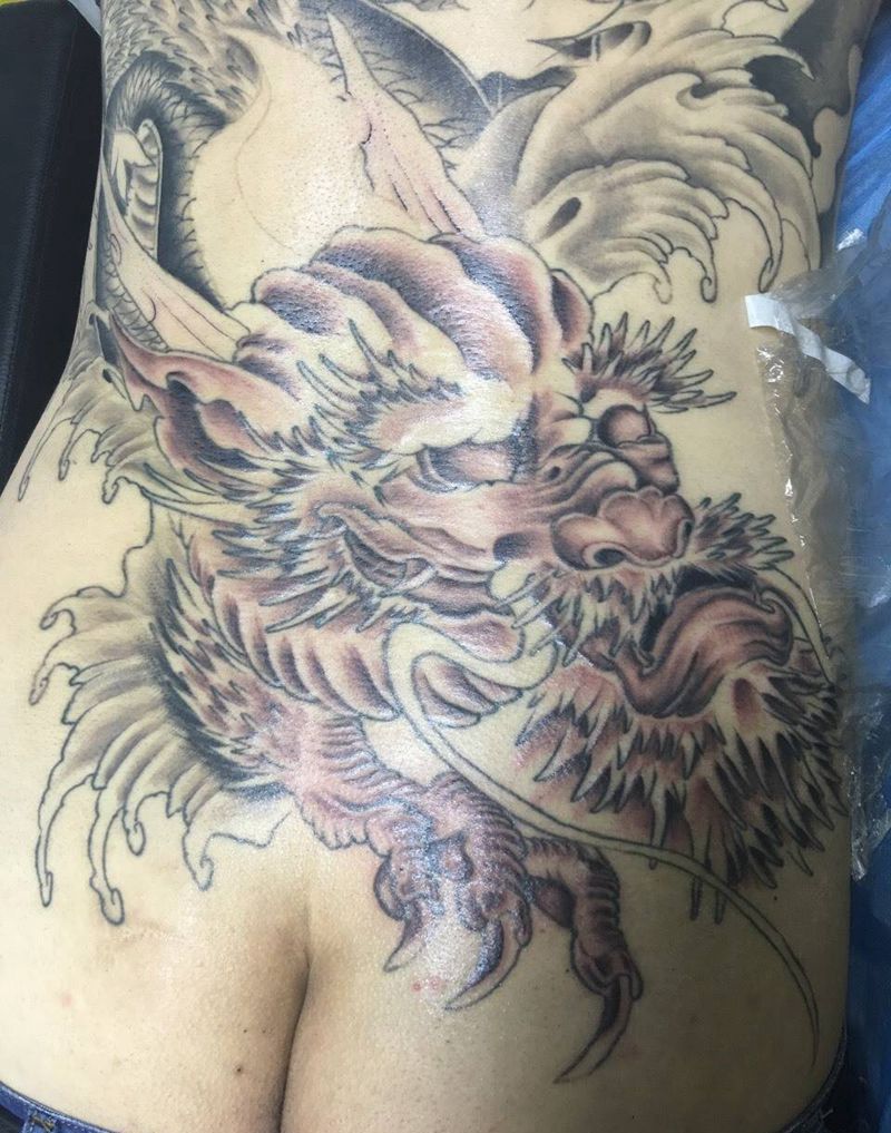 当前位置: 首页 >天津市纹身店-晟堂刺青工作室纹身图案>满背龙 未完成纹身图片_
