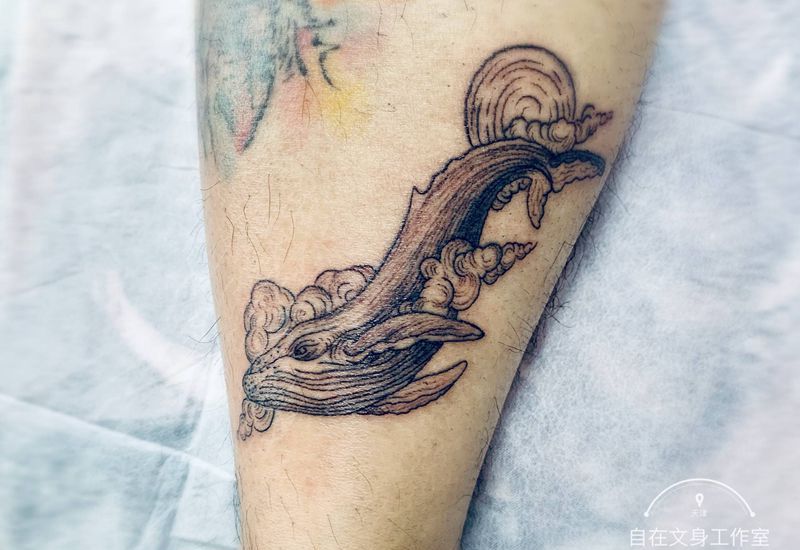 当前位置: 首页 >天津市纹身店-自在文身设计工作室纹身图案>鲸鱼纹身图片_腿部纹身图案