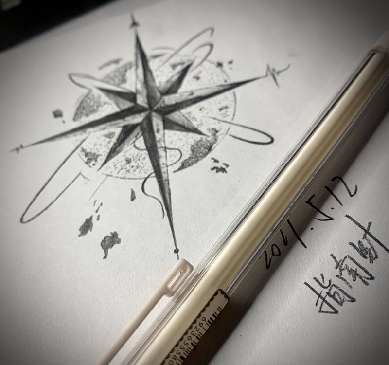 当前位置: 首页 >天津市纹身店-皆刺青纹身工作室纹身图案>小腿后侧指南针英文纹身图片_腿部花体字点刺指南针字母纹身图案