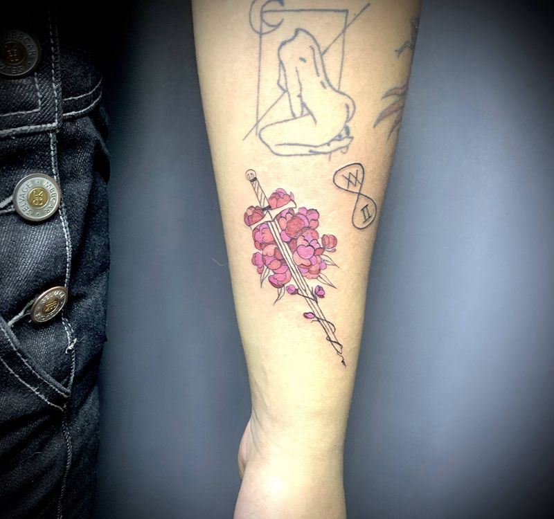 当前位置: 首页 >天津市纹身店-皆刺青纹身工作室纹身图案>小臂剑和花纹身图片_手臂New School几何小清新剑花纹身图案