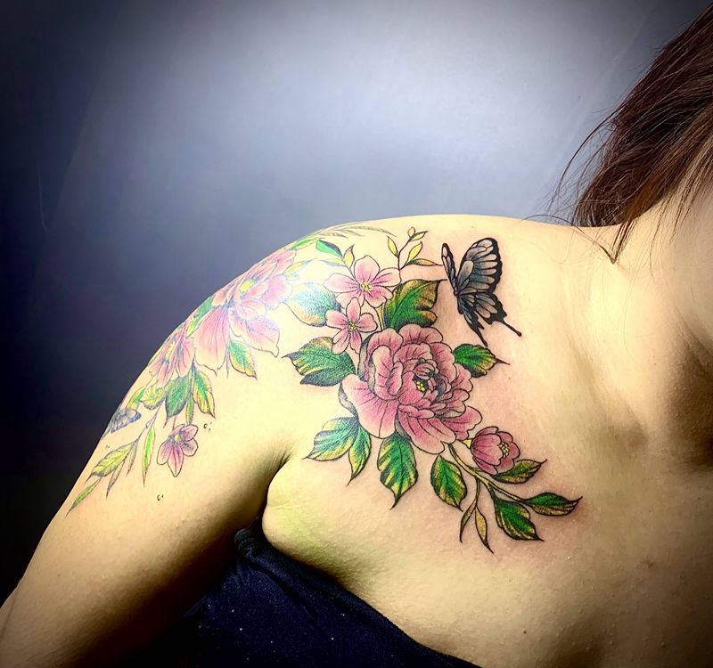 当前位置: 首页 >天津市纹身店-皆刺青纹身工作室纹身图案>大臂接锁骨彩色素花纹身图片_手臂胸部水彩花纹身图案