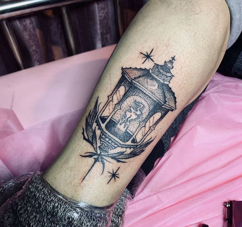 school蜡烛灯纹身图片_腿部New School点刺纹身图案