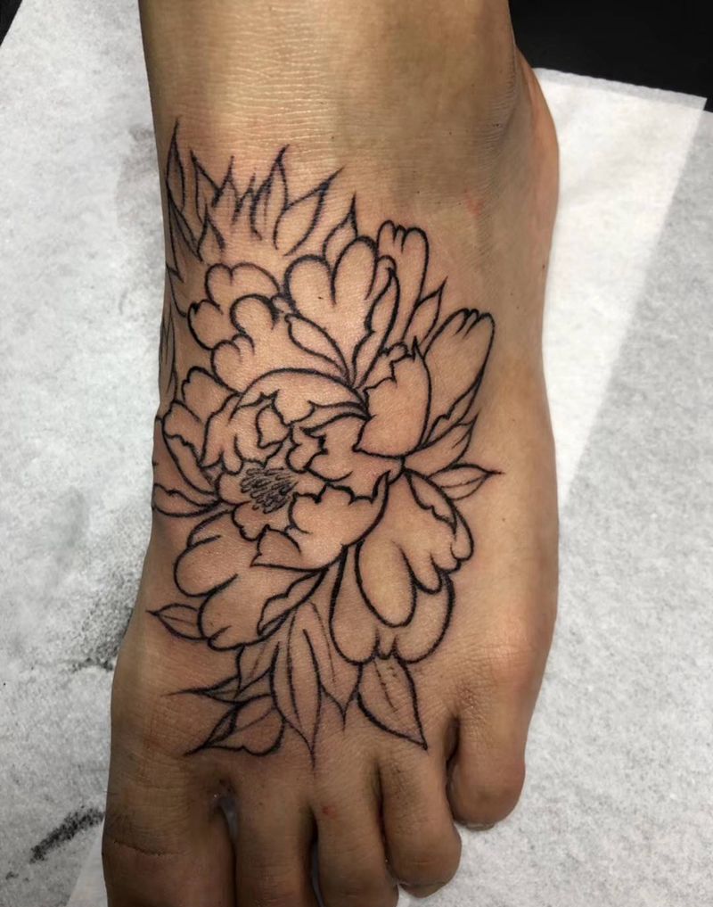 脚面牡丹未完纹身图片_脚部老传统纹身图案
