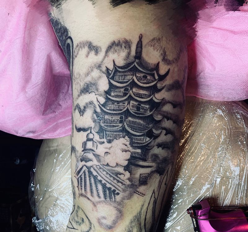 当前位置: 首页 >天津市纹身店-皆刺青纹身工作室纹身图案>传统大臂内侧玲珑塔纹身图片_手臂臀部新传统塔玲珑塔纹身图案