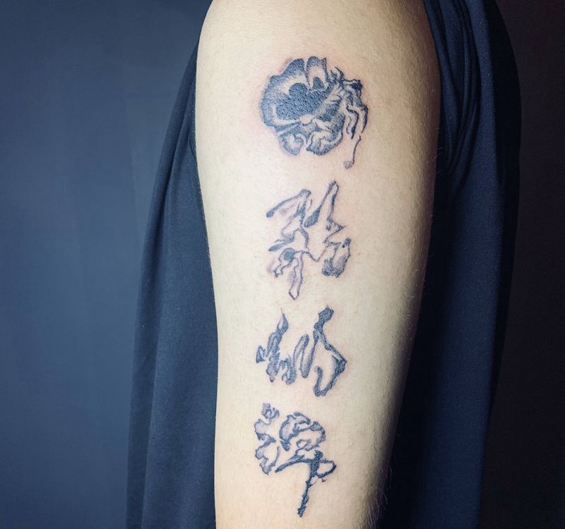 当前位置: 首页 >天津市纹身店-皆刺青纹身工作室纹身图案>水墨风字体前程似锦纹身图片_手臂水墨纹身图案