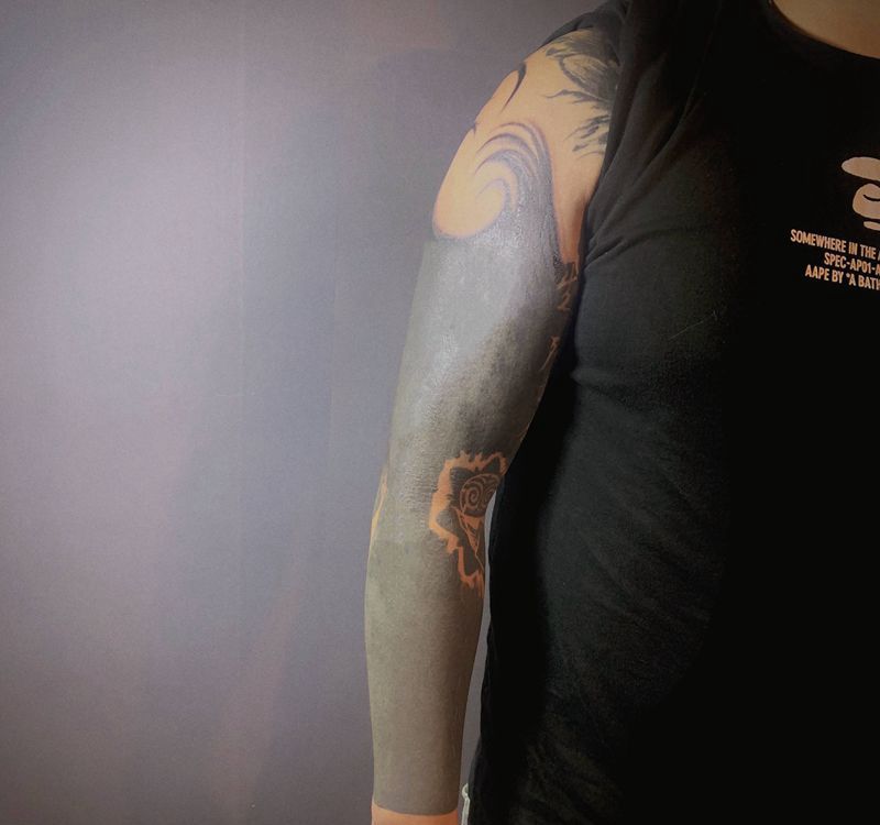 当前位置: 首页 >天津市纹身店-皆刺青纹身工作室纹身图案>黑臂纹身图片_手臂水墨黑臂纹身图案