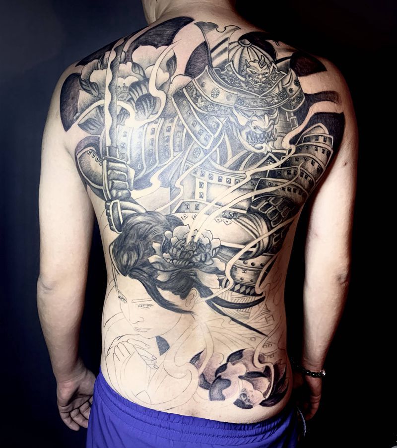黑灰满背纹身图案